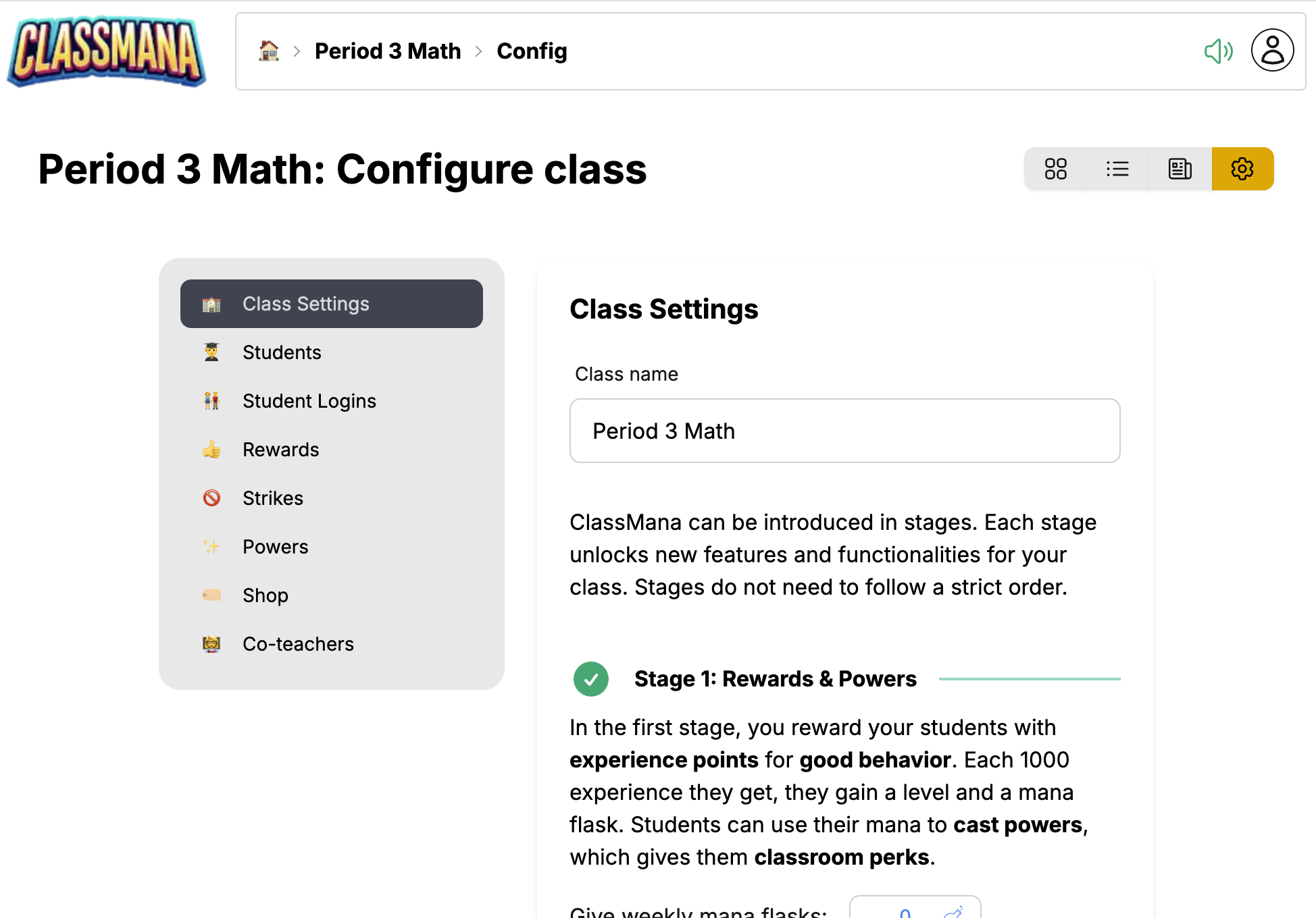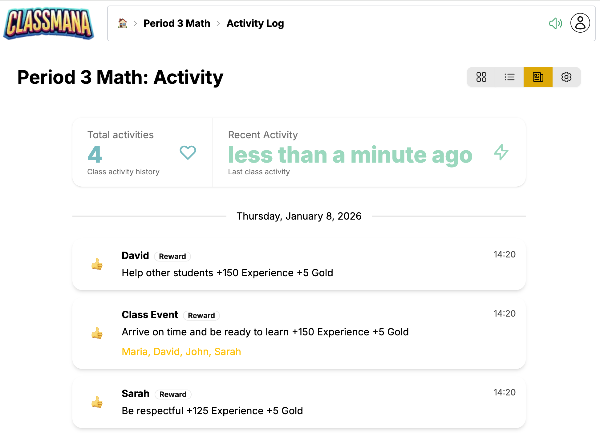 班級儀表板是您管理班級的中央樞紐。從這裡您可以查看學生、給予獎勵、使用能力、追蹤活動和配置班級設定。