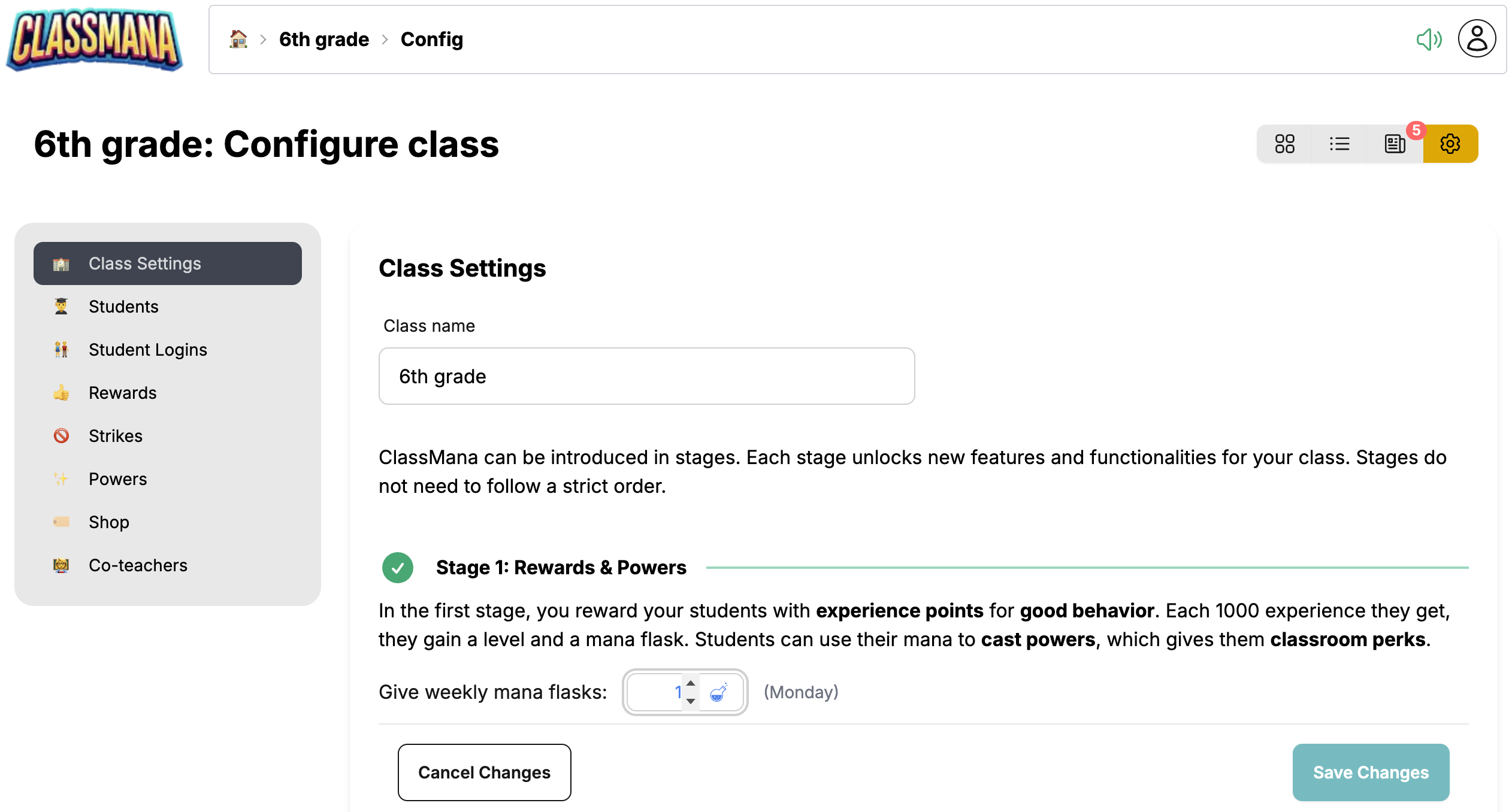 階段一是 ClassMana 遊戲化系統的基礎。您為學生的良好行為獎勵經驗值。每獲得 1000 經驗值,學生就會升級並獲得 1 點法力值。學生可以消費法力值來施展能力——這是課堂的特殊福利與特權。